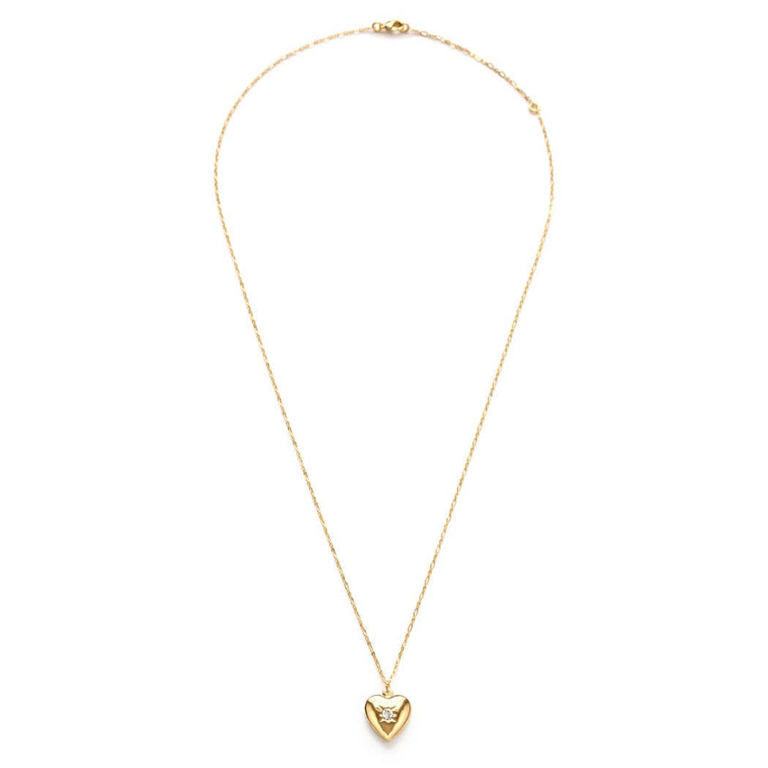 This petite yet meaningful necklace features a classic heart shaped locket suspended from a 20 inch figaro chain, crafted from brass with a warm 14k gold plated finish. The polished heart design gently opens to reveal a tiny compartment perfect for holding a small photo, a handwritten note, or another treasured keepsake. Designed and assembled by hand in Amano Studio’s Sonoma, California workshop, it blends timeless sentiment with everyday wearability and subtle shine. Elegant and personal, it makes a thoughtful gift for anniversaries, Valentine’s Day, birthdays, or heartfelt celebrations.