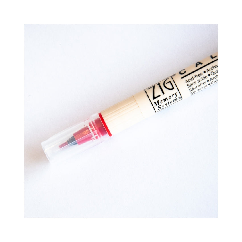 The Zig Calligraphy Marker is a dual-tip chisel marker designed for elegant lettering, borders, and decorative styles. With one tip at 5.0 mm for broad strokes and a finer 2.0 mm tip for detail work, it gives versatility in your calligraphic expression.